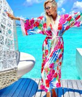 Długa sukienka z lejącym dekoltem (multiway: dekolt z przodu, lub z tyłu oraz rozcięciami po bokach)