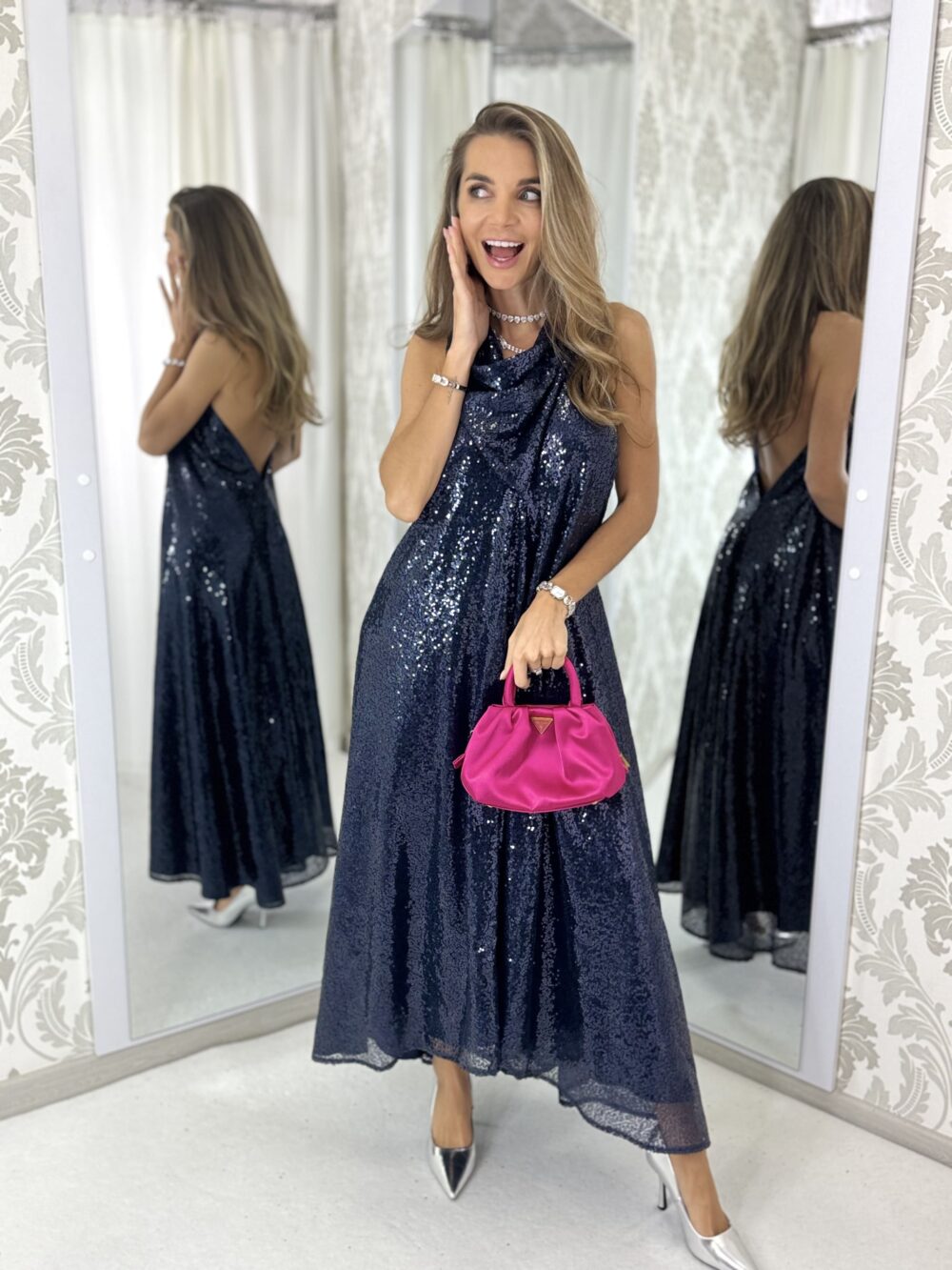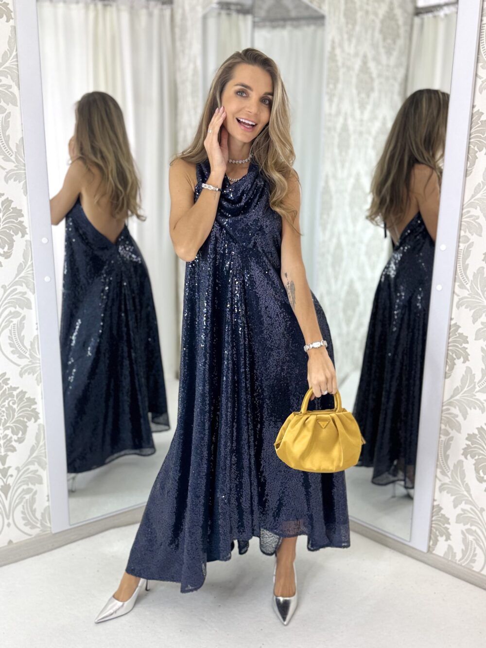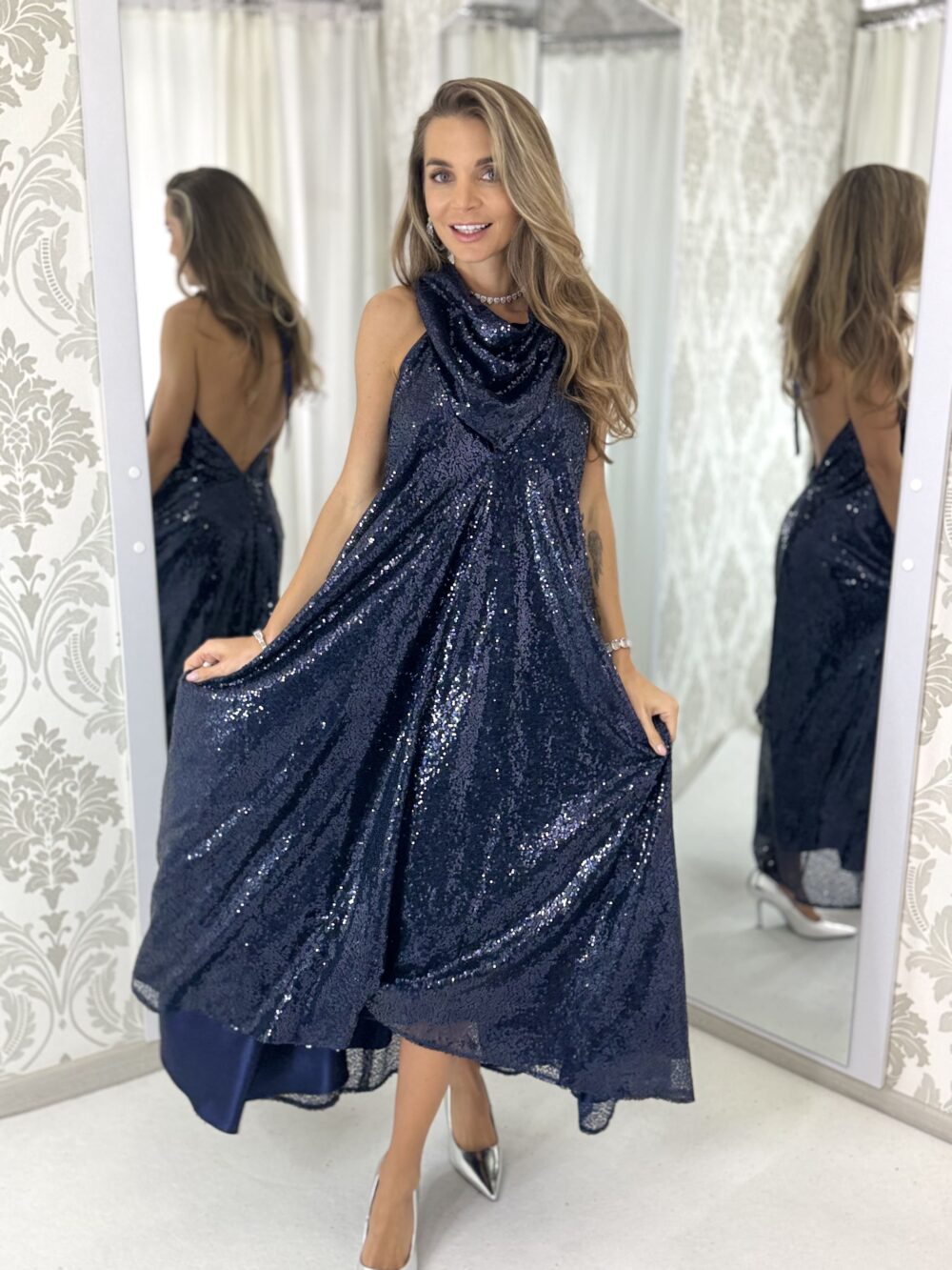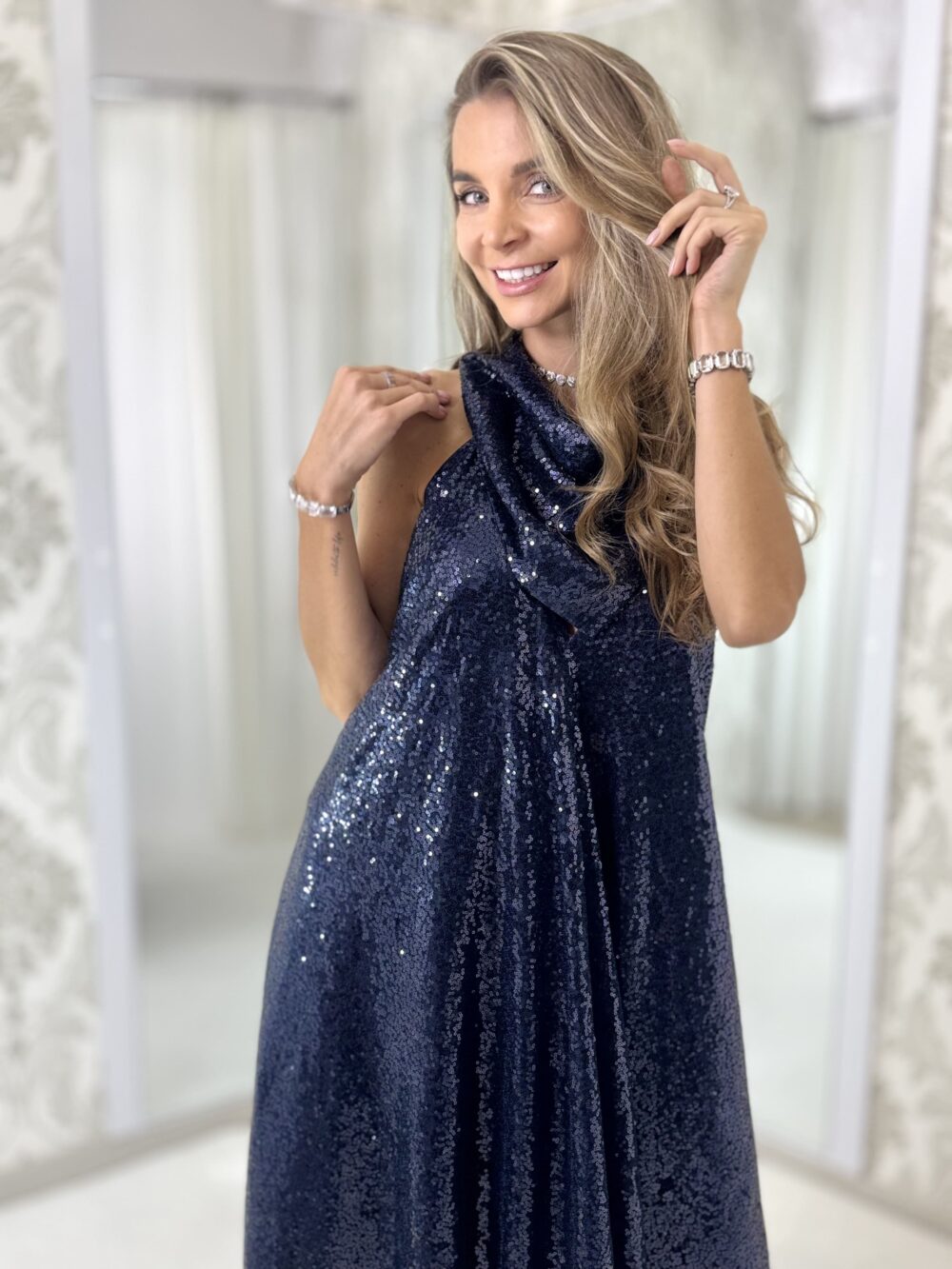 The Bella Glamour long dress is the essence of elegance and feminine charm. Made from high-quality, shimmering sequin fabric, it beautifully reflects the light, creating a dazzling effect with every movement. The deep neckline at the front and back adds a touch of sophistication and allure. It’s the perfect choice for grand occasions, balls, galas, or evening events.