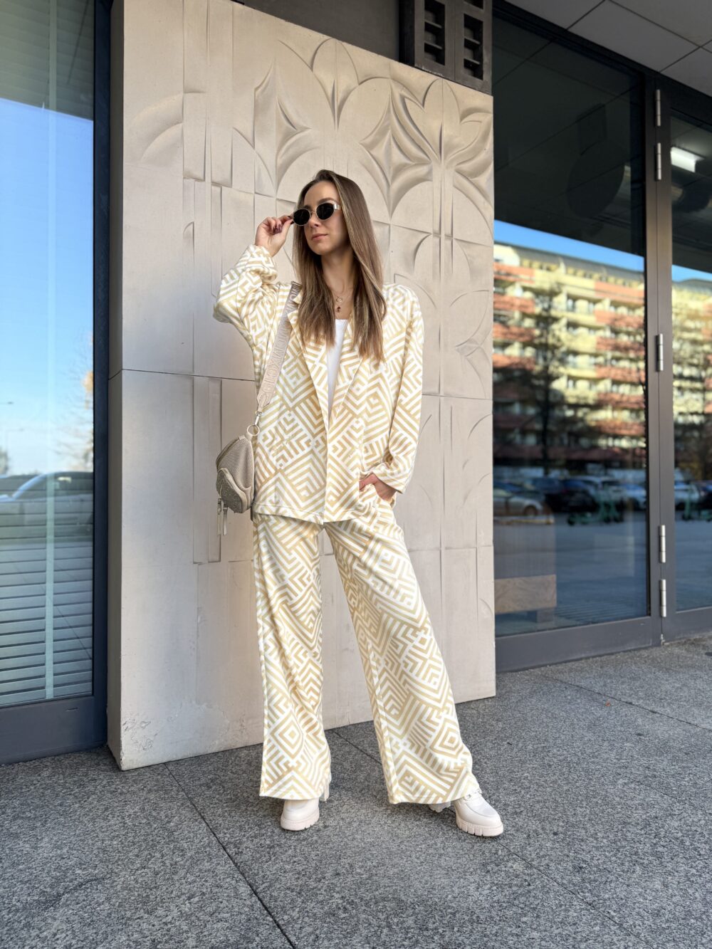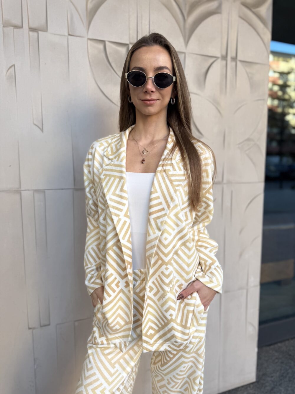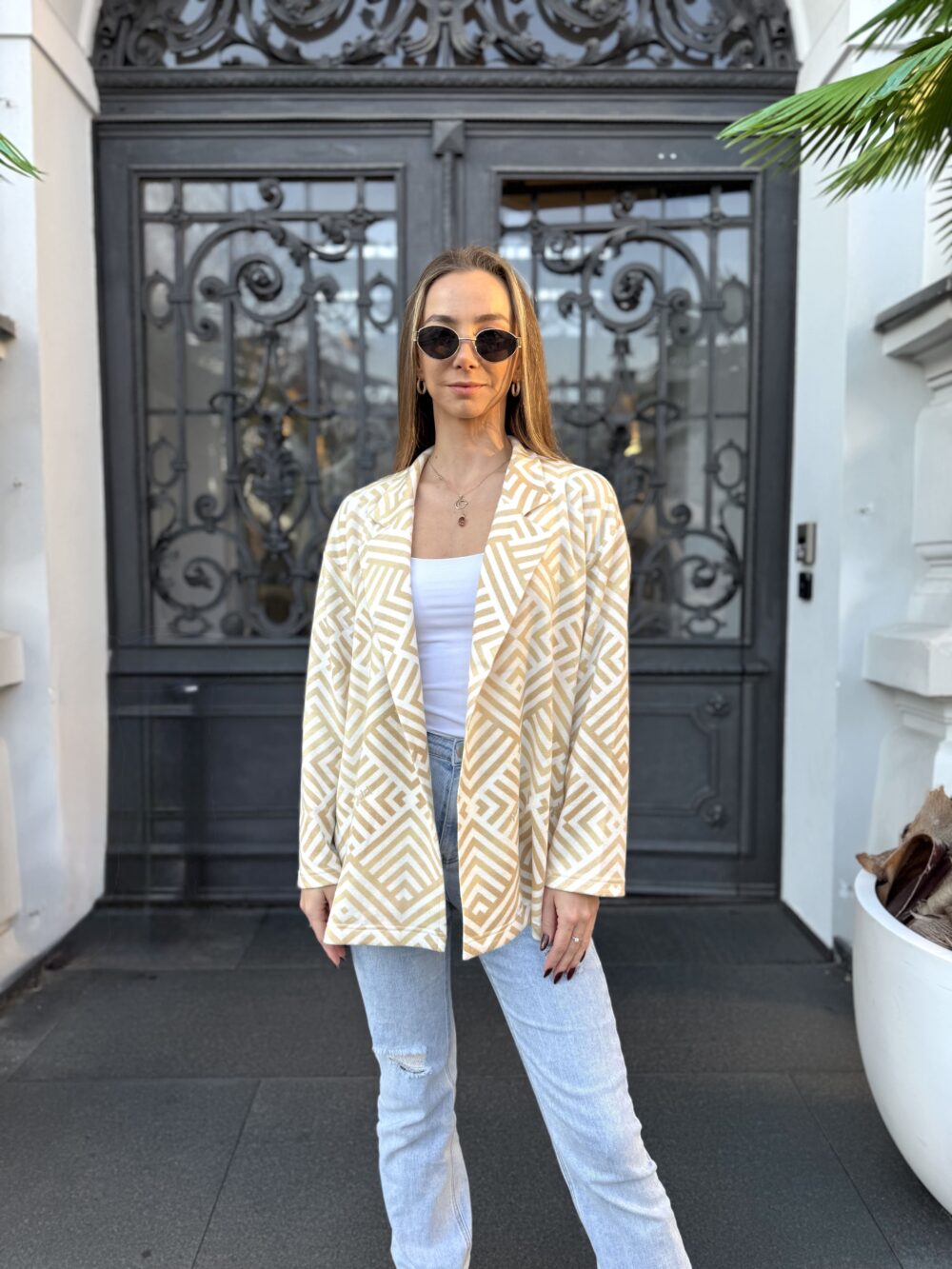 An oversized blazer made from a soft fabric with a subtle nap, combining elegance with comfort.