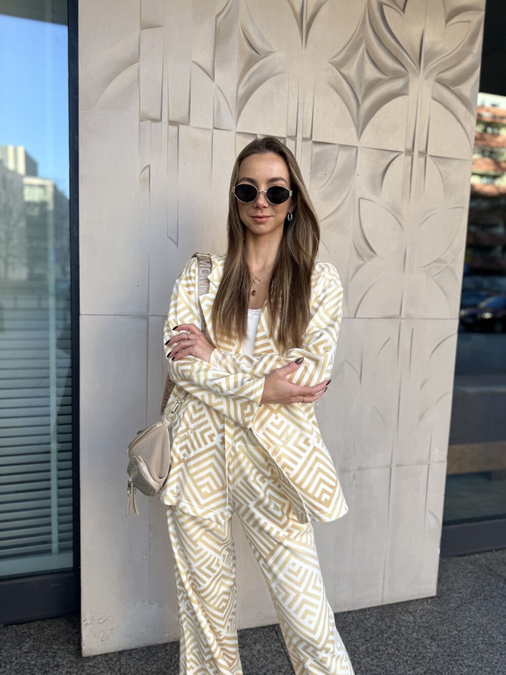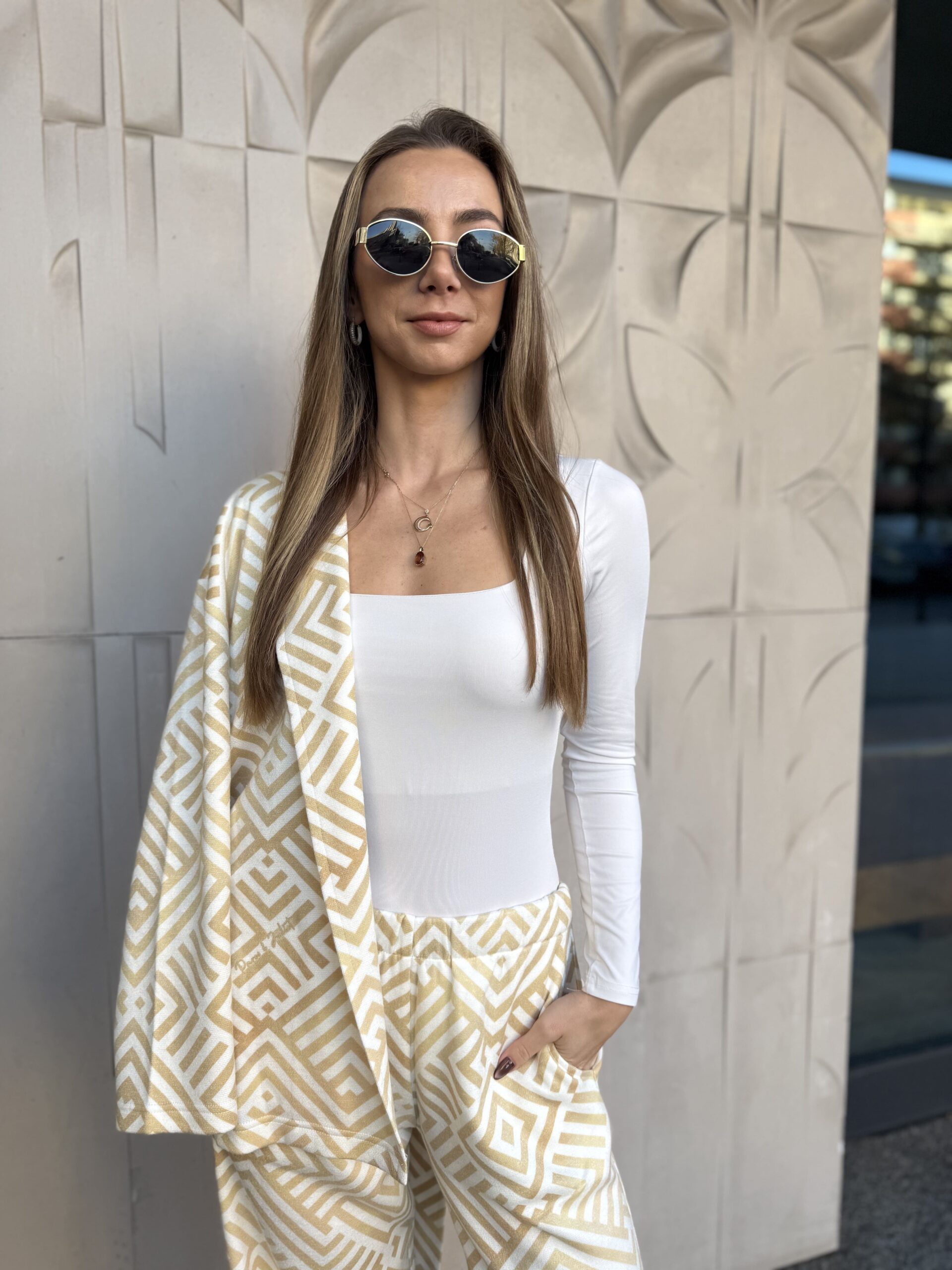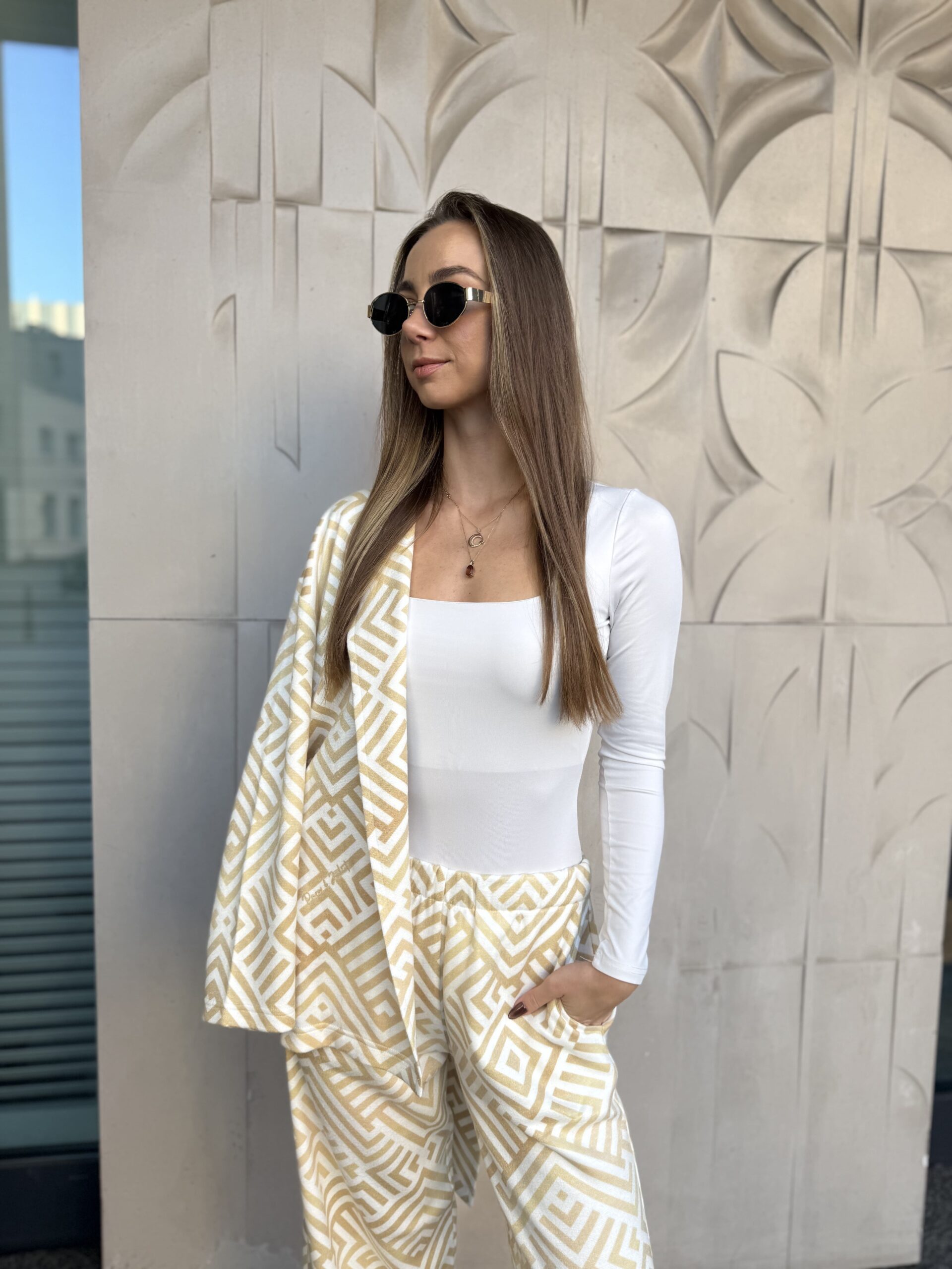An oversized blazer made from a soft fabric with a subtle nap, combining elegance with comfort.
