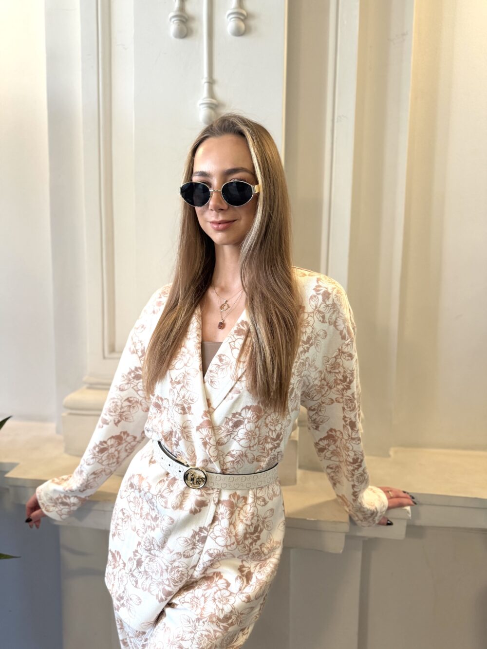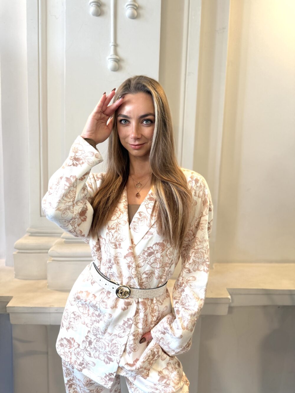 An oversized blazer made from a soft fabric with a subtle nap, combining elegance with comfort.