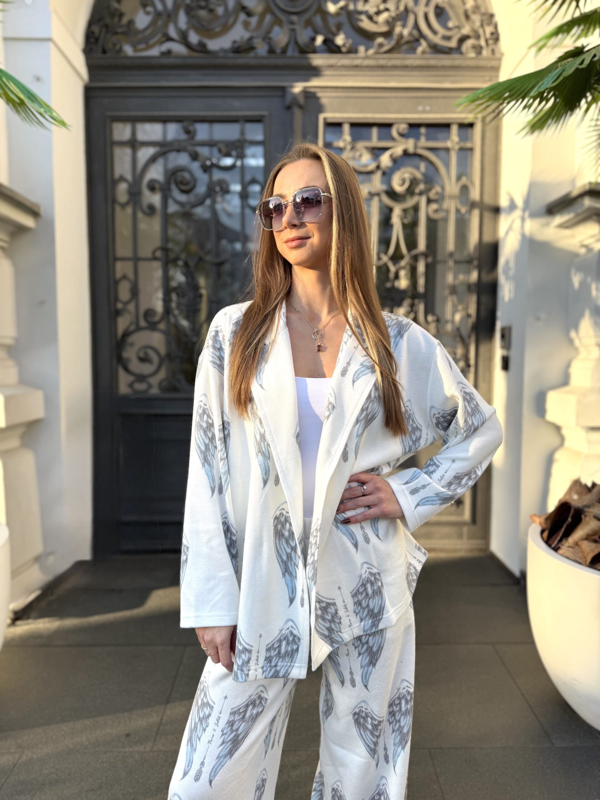 An oversized blazer made from a soft fabric with a subtle nap, combining elegance with comfort.