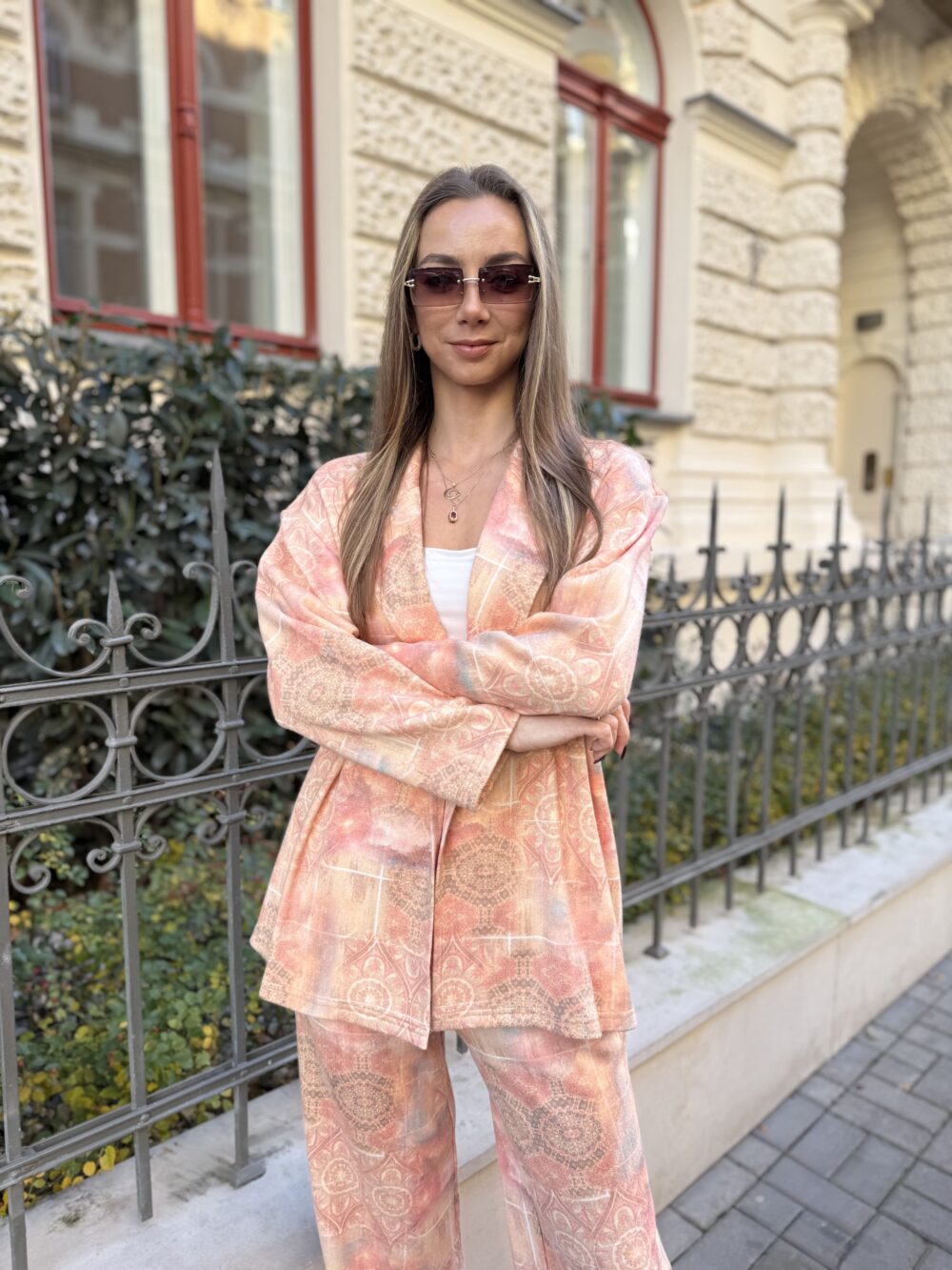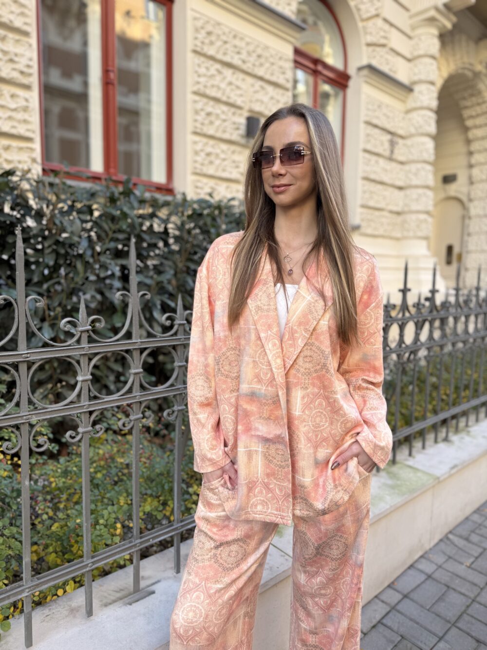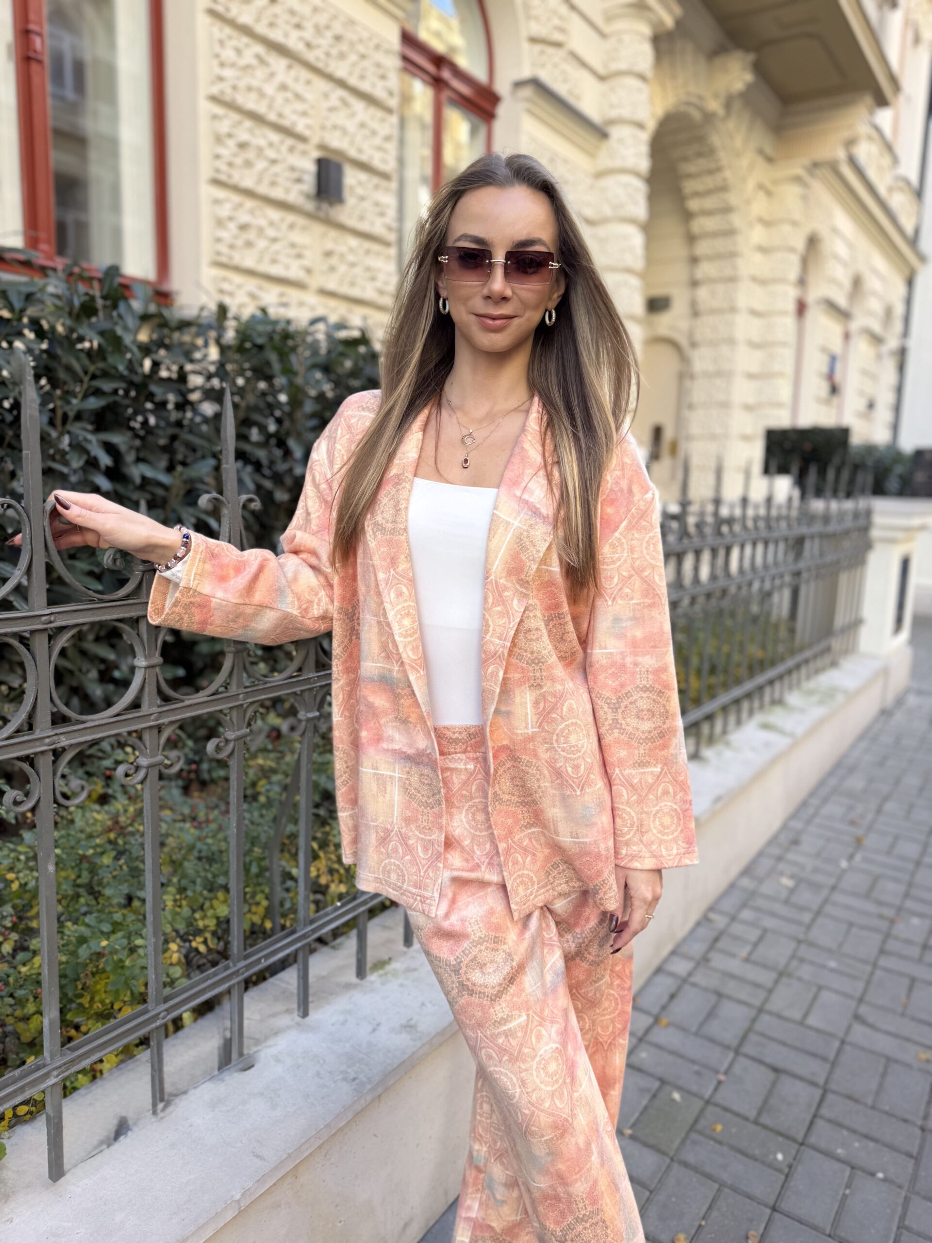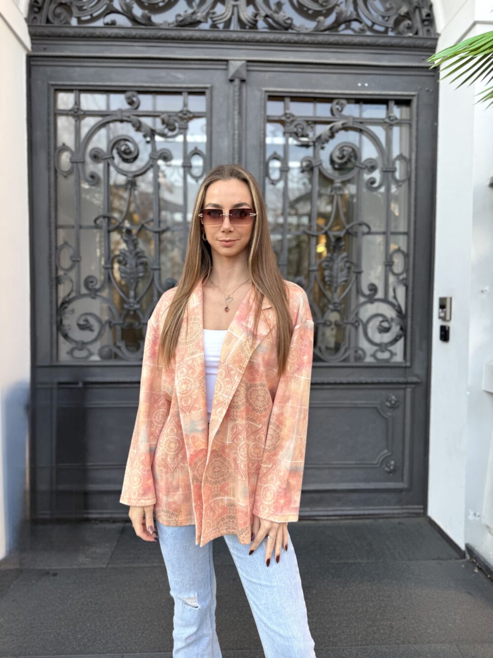 An oversized blazer made from a soft fabric with a subtle nap, combining elegance with comfort.