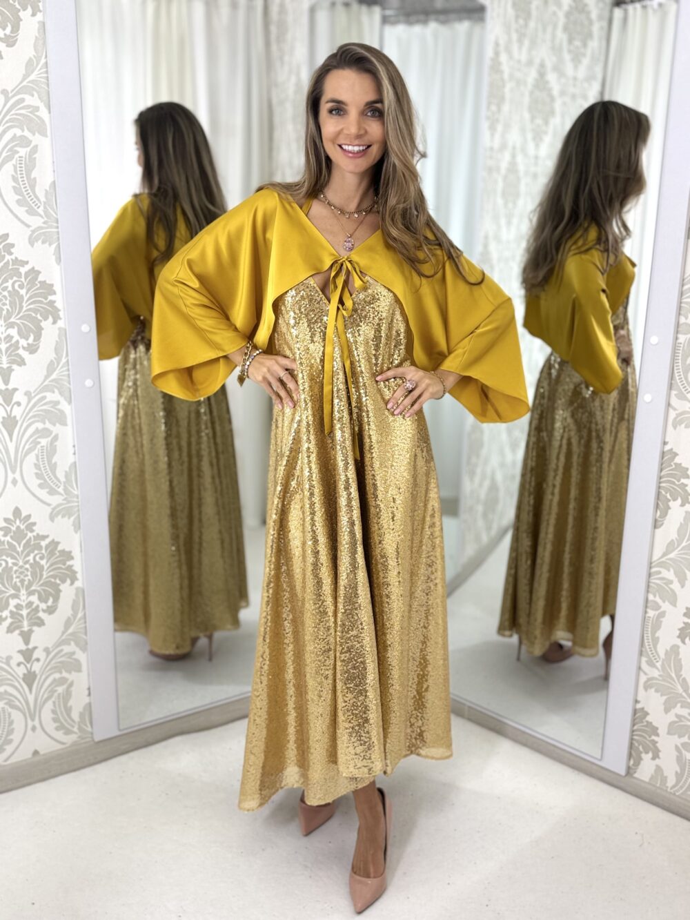 Stylowe bolerko wiązane na piersiach to uniwersalny dodatek, który doskonale dopasowuje się do każdej sylwetki dzięki rozmiarowi one-size. Wykonane z lekkiego, przyjemnego w dotyku materiału, subtelnie podkreśla kobiece kształty. To idealne uzupełnienie eleganckich stylizacji, gdy chcesz w szykowny sposób zakryć ramiona, nie rezygnując z lekkości i wdzięku.