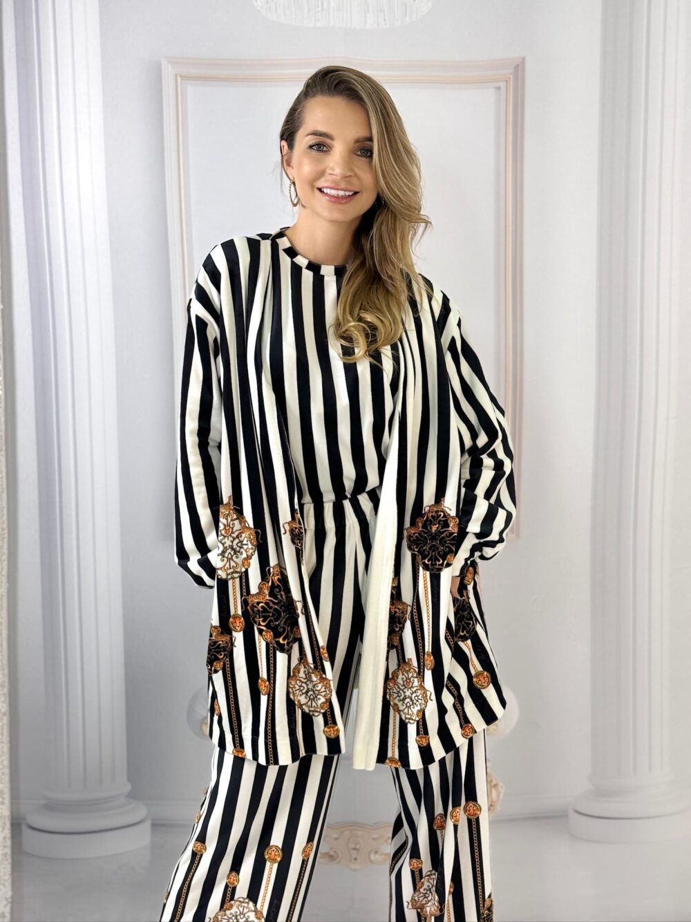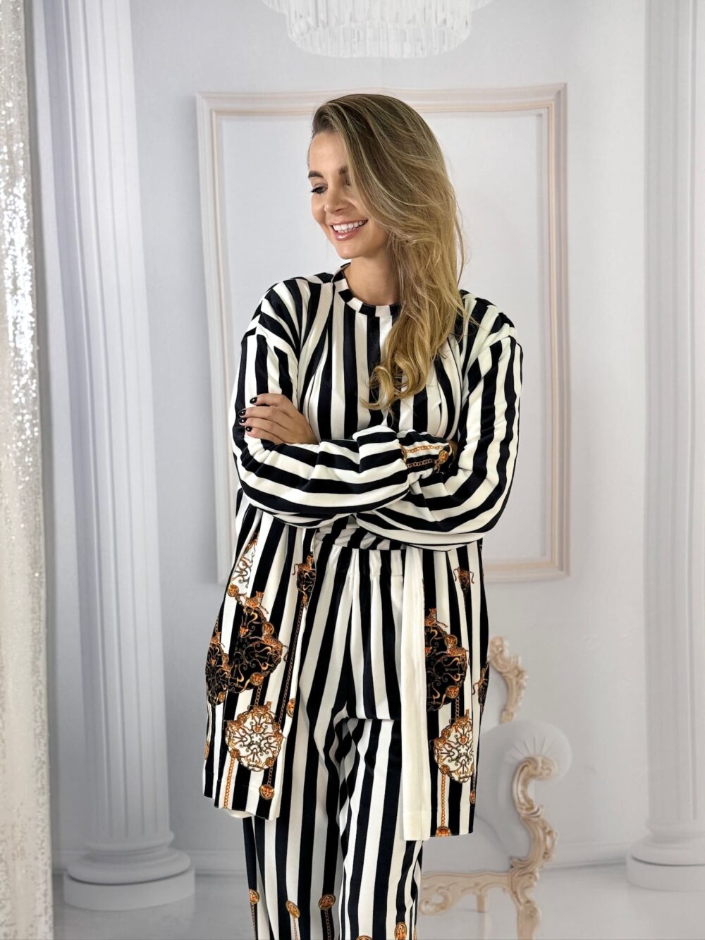 Cardigan zaprojektowany i uszyty w Polsce. Bardzo elastyczny materiał, miękki, lśniący wykonany z kosztownych włókien. Wyposażony jest w charakterystyczny meszek.